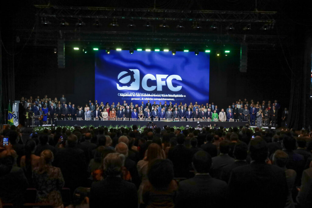 O Conselho Regional de Contabilidade de Goiás (CRCGO) esteve presente na solenidade de posse do novo presidente do Conselho Federal de Contabilidade (CFC), Joaquim Bezerra, realizada no dia 11 de março, no Centro de Convenções Ulysses Guimarães, em Brasília. O evento reuniu autoridades dos Três Poderes, representantes institucionais das 27 unidades da federação, lideranças da classe contábil e delegações internacionais, em uma cerimônia marcada por reconhecimento, emoção e compromisso com o futuro da profissão contábil no Brasil.