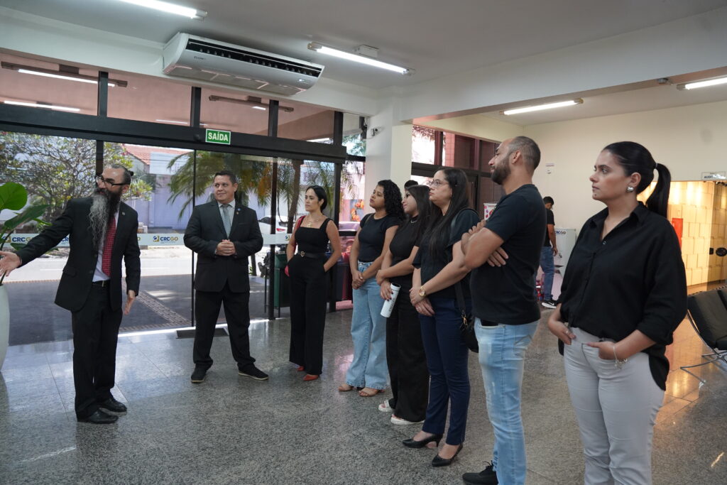 O Conselho Regional de Contabilidade de Goiás (CRCGO) recebeu, nesta segunda-feira (27), estudantes do oitavo período do curso de Ciências Contábeis do Centro Universitário Cambury, sob a coordenação da professora Eveline Andrade, para uma visita técnica institucional. A programação foi conduzida pelo vice-presidente de Registro, Francisco de Assis, e pelo vice-presidente de Fiscalização, Ética e Disciplina, Ranniel Martins.